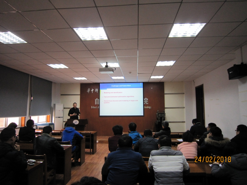 2月24日下午,加拿大维多利亚大学(University of Victoria)施阳(Yang Shi)教授应关治洪教授邀请来新葡的京官网进行学术交流,并作了题为“Model Predictive Control (MPC) for Motion Control Systems: Some Results and Challenges”的学术报告。报告会由刘智伟副教授主持,新葡的京官网教师关治洪、张海涛、刘智伟、池明等30多位师生参加了报告会。